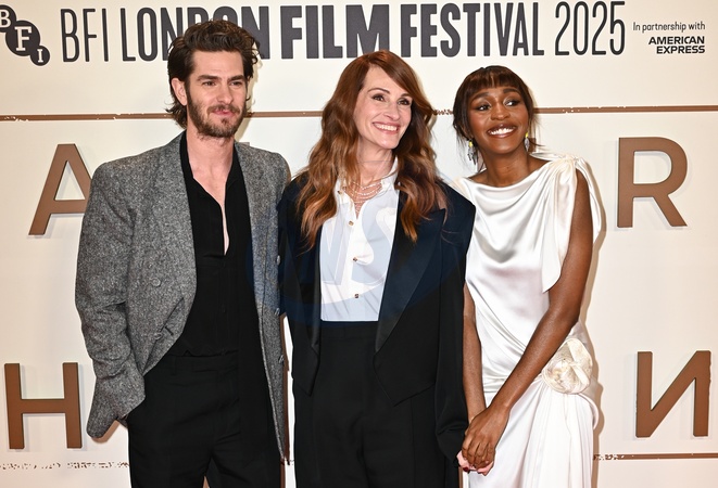 Andrew Garfield, Julia Roberts and Ayo Edebiri attends ‘After the Hunt' Premiere during the BFI London Film Festival, at the Southbank Centre, Royal Festival Hall in London, England. UK. Saturday 11th October 2025, Credit:James Warren / Avalon