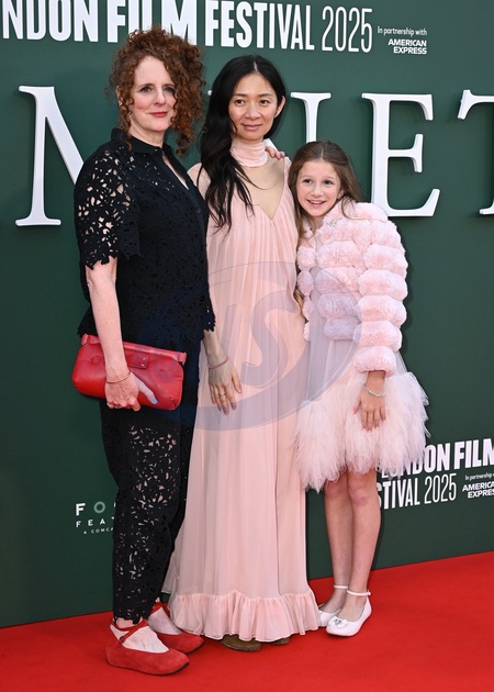 Maggie O'Farrell, Chloé Zhao and Olivia Lynes attends ‘Hamnet' Premiere during the BFI London Film Festival, at the Southbank Centre, Royal Festival Hall in London, England. UK. Saturday 11th October 2025, Credit:James Warren / Avalon