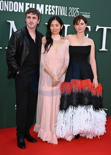 Paul Mescal, Chloé Zhao and Jessie Buckley attends ‘Hamnet' Premiere during the BFI London Film Festival, at the Southbank Centre, Royal Festival Hall in London, England. UK. Saturday 11th October 2025, Credit:James Warren / Avalon