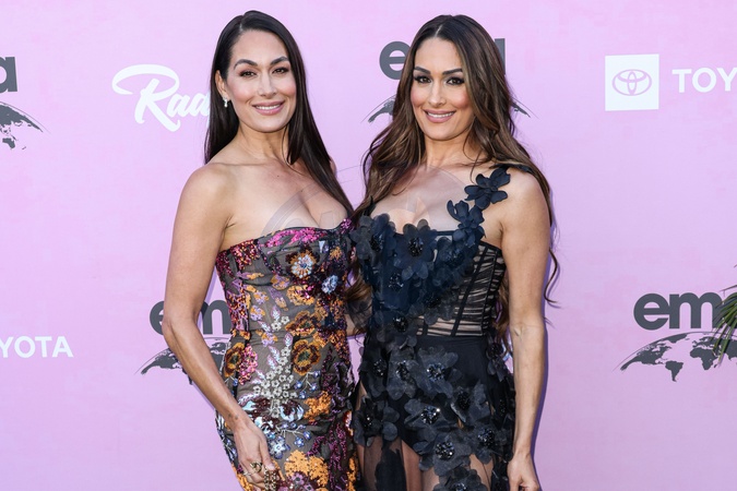 STUDIO CITY, LOS ANGELES, CALIFORNIA, USA - OCTOBER 11: American media personality and retired professional wrestler Brie Bella (Brie Garcia, Brianna Monique Danielson) and twin sister/American professional wrestler and television personality Nikki Bella (Nikki Garcia, Stephanie Nicole Garcia-Colace) of The Bella Twins arrive at the 35th Annual EMA (Environmental Media Association) Awards Gala 2025 held at CBS Radford Studio Center on October 11, 2025 in Studio City, Los Angeles, California, United States., Credit:Xavier Collin / Avalon