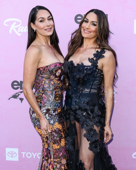 STUDIO CITY, LOS ANGELES, CALIFORNIA, USA - OCTOBER 11: American media personality and retired professional wrestler Brie Bella (Brie Garcia, Brianna Monique Danielson) and twin sister/American professional wrestler and television personality Nikki Bella (Nikki Garcia, Stephanie Nicole Garcia-Colace) of The Bella Twins arrive at the 35th Annual EMA (Environmental Media Association) Awards Gala 2025 held at CBS Radford Studio Center on October 11, 2025 in Studio City, Los Angeles, California, United States., Credit:Xavier Collin / Avalon