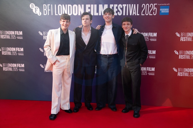 (L-R) - Shaun Thomas, Jacob Dudman, Ollie Briscombe, Taylor Uttley attends the Headline Gala of 'The Choral' at The 69th BFI London Film Festival at Royal Festival Hall, Southbank, London, England, UK on Sunday 12 October, 2025., Credit:Justin Ng / Avalon