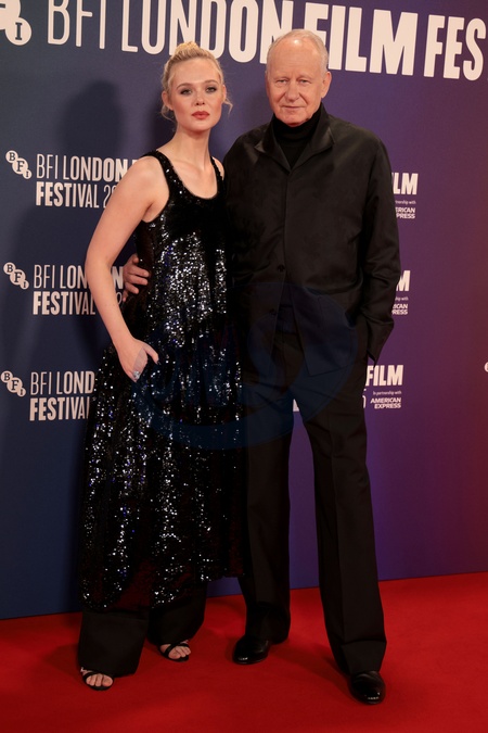 Elle Fanning and Stellan Skarsgard at Sentimental Value premiere, 69th BFI London Film Festival, UK, on 12th October 2025, Credit:James Shaw / Avalon