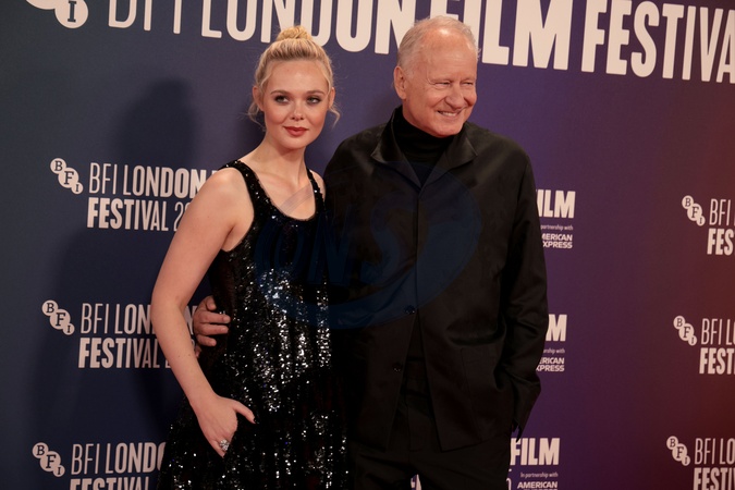 Elle Fanning and Stellan Skarsgard at Sentimental Value premiere, 69th BFI London Film Festival, UK, on 12th October 2025, Credit:James Shaw / Avalon