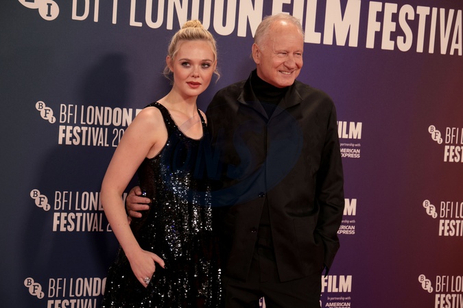 Elle Fanning and Stellan Skarsgard at Sentimental Value premiere, 69th BFI London Film Festival, UK, on 12th October 2025, Credit:James Shaw / Avalon