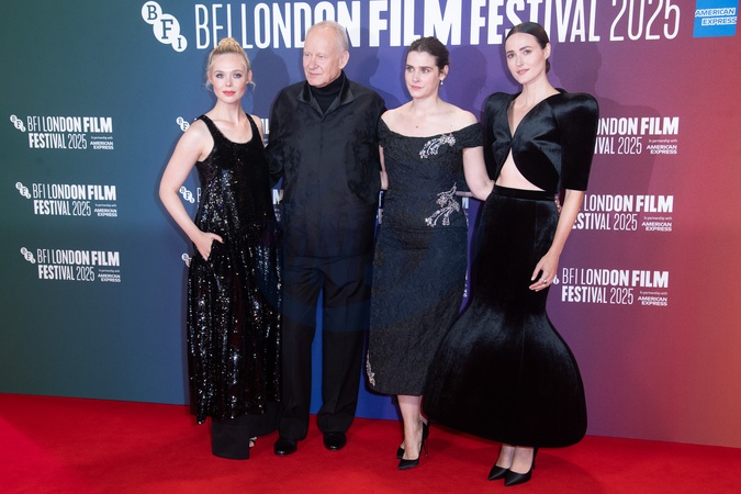 (L-R) - Elle Fanning, Stellan Skarsgård, Inga Ibsdotter Lilleaas, Renate Reinsve attends the Headline Gala of 'Sentimental Value' at The 69th BFI London Film Festival at Royal Festival Hall, Southbank, London, England, UK on Sunday 12 October, 2025., Credit:Justin Ng / Avalon