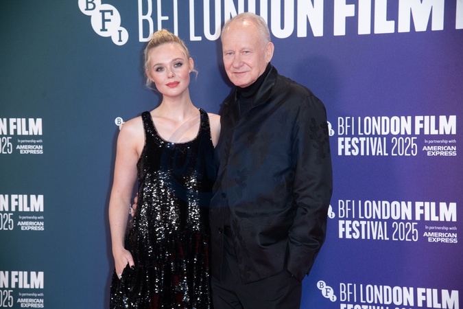 Elle Fanning and Stellan Skarsgård attends the Headline Gala of 'Sentimental Value' at The 69th BFI London Film Festival at Royal Festival Hall, Southbank, London, England, UK on Sunday 12 October, 2025., Credit:Justin Ng / Avalon