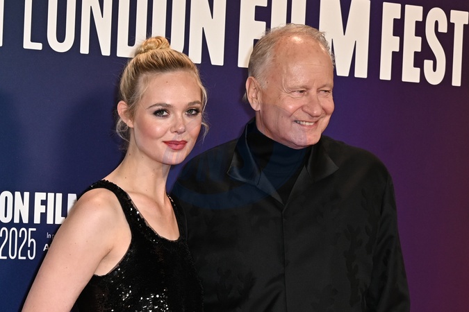 Elle Fanning and Stellan Skarsgĺrd attends "Sentimental Value" Premiere during the BFI London Film Festival, at the Southbank Centre, Royal Festival Hall in London, England. UK. Sunday 12th October 2025, Credit:James Warren / Avalon