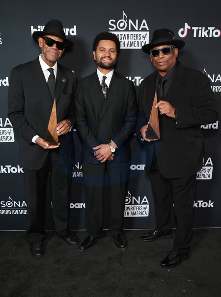 12 October 2025 . Los Angeles, California - Jimmy Jam, Representative Maxwell Frost, Terry Lewis At Songwriters Of North America (SONA) Warrior Awards held at Skirball Cultural Center in Los Angeles., Credit:Sadou Faye / Avalon