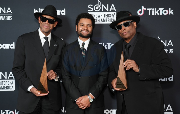 12 October 2025 . Los Angeles, California - Jimmy Jam, Representative Maxwell Frost, Terry Lewis At Songwriters Of North America (SONA) Warrior Awards held at Skirball Cultural Center in Los Angeles., Credit:Sadou Faye / Avalon