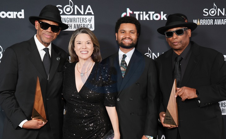 12 October 2025 . Los Angeles, California - Jimmy Jam, Representative Angie Craig, Representative Maxwell Frost, Terry Lewis At Songwriters Of North America (SONA) Warrior Awards held at Skirball Cultural Center in Los Angeles., Credit:Sadou Faye / Avalon