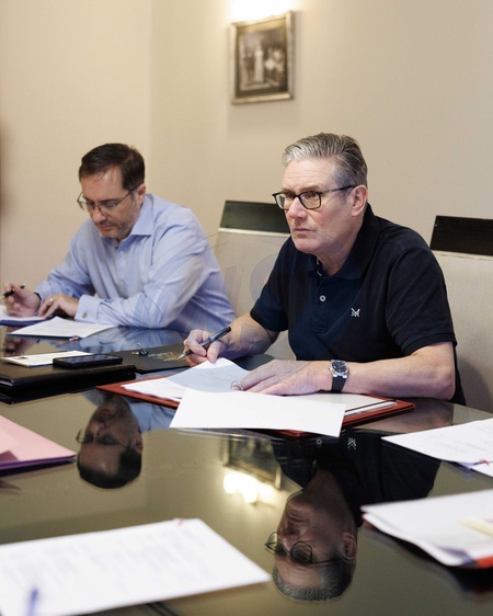 13/10/2025. Sharm El-Sheikh, Egypt. Prime Minister Keir Starmer prepares ahead of the Sharm El-Sheikh Peace Summit where the peace plan for Gaza will be signed., Credit:Lauren Hurley / Avalon