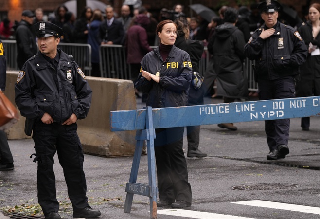 Film set for the TV series FBI at the corner of Tudor City Place and East 41st Street in New York City, Monday, October 13, 2025., Credit:Jennifer Graylock-Graylock.com / Avalon