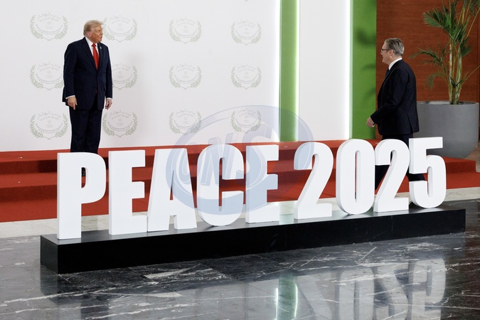 13/10/2025. Sharm El-Sheikh, Egypt. Prime Minister Keir Starmer speaks meets with US Presidnt Donald Trumps as he attends the Sharm El-Sheikh peace summit at the Sharm El-Sheikh International Convention Centre where the peace plan for Gaza will be signed., Credit:Lauren Hurley / Avalon