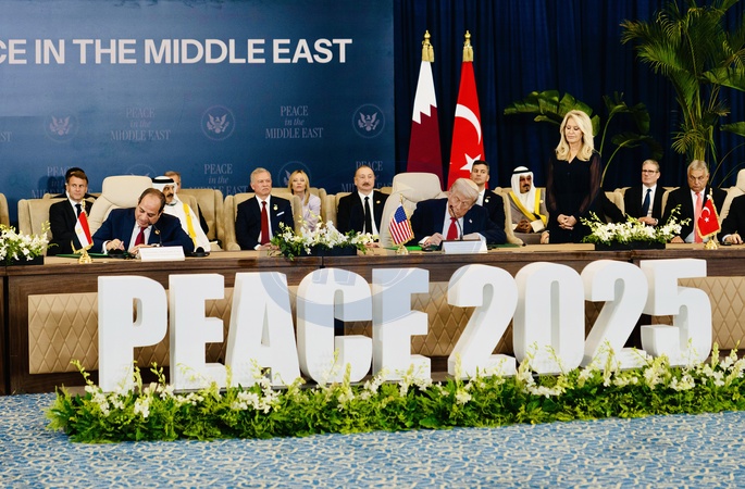 13/10/2025 Sharm el Sheikh, Signing Ceremony of the Middle East Peace Plan, pictured: President of the United States Donald J. Trump, President of Egypt Abdel Fattah Al Sisi, Emir of Qatar Tamim bin Hamad Al Thani, and President of the Republic of Turkey Recep Tayyip Erdogan signing the Middle East Peace Plan., Credit:Ufficio Stampa / Avalon
