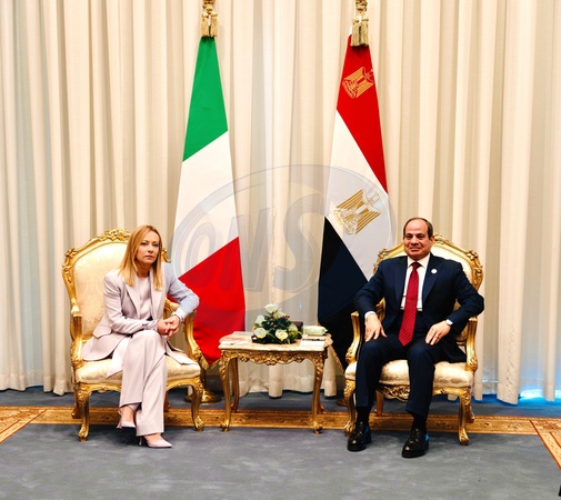 13/10/2025 Sharm el Sheikh, signing ceremony of the Middle East Peace Plan. Pictured: Prime Minister Giorgia Meloni with Egyptian President Abdel Fattah Al Sisi., Credit:Ufficio Stampa / Avalon