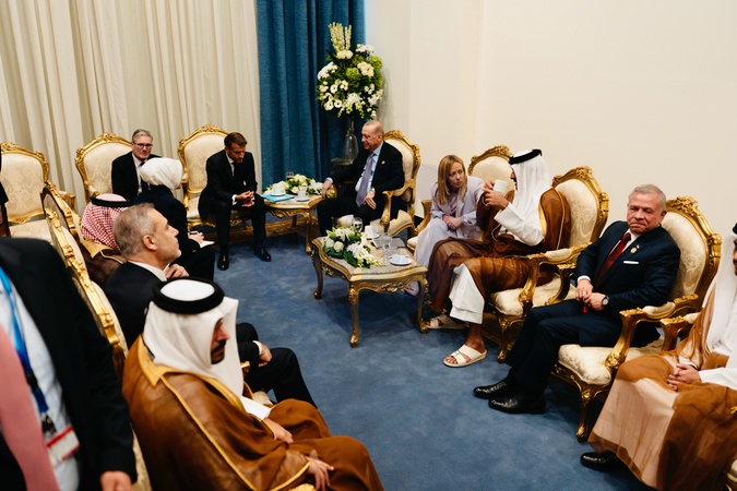 13/10/2025 Sharm el Sheikh, Signing ceremony of the Middle East Peace Plan, pictured is Prime Minister Giorgia Meloni with Turkish President Erdogan., Credit:Ufficio Stampa / Avalon