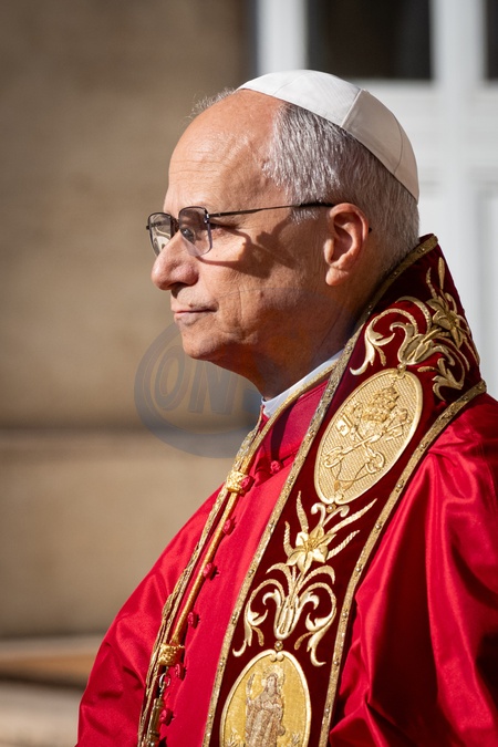 Pope Leo XIV is welcomed by Italian President Sergio Mattarella as he arrives at the Quirinale Presidential Palace in Rome, Italy, on 14 October, 2025.