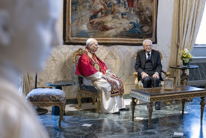 Pope Leo XIV arrives at the Quirinale Palace for a meeting with the President of the Republic. Rome, Italy October 14, 2025