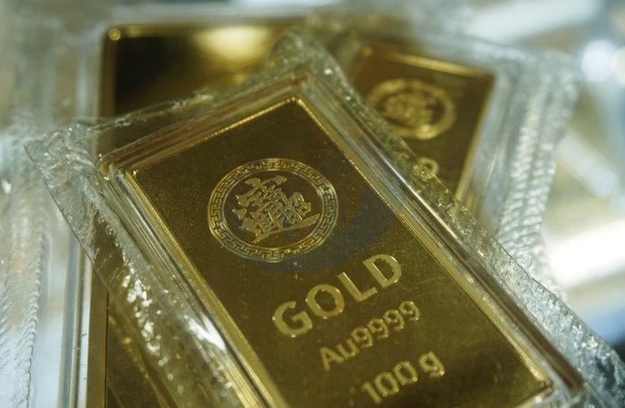 Gold bars for retail investors is displayed at a gold store in Hangzhou in east China's Zhejiang province Tuesday, Oct. 14, 2025. Gold prices have risen above US$4,200 per ounce., Credit:LONG WEI / Avalon