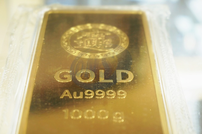 A 1,000-gram gold bar for retail investors is displayed at a gold store in Hangzhou in east China's Zhejiang province Tuesday, Oct. 14, 2025. Gold prices have risen above US$4,200 per ounce., Credit:LONG WEI / Avalon