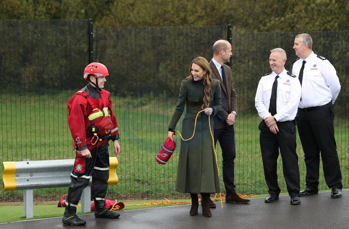 14/10/2025. Cookstown, UK. The Prince and Princess of Wales during a visit to the Northern Ireland Fire and Rescue Service Learning and Development College in Cookstown, Northern Ireland. The Prince and Princess met with Chief Fire & Rescue Officer, Aidan Jennings and learned how the college equips trainees with the skills, resilience and expertise needed to help keep everyone in Northern Ireland safe. Their Royal Highnesses then engaged with two training scenarios: a warehouse space where there was a variety of simulated incidents and drills ongoing, and the flood-water rescue training space to see a simulation of a casualty being rescued from a fast-flowing river. During these scenarios, The Prince and Princess met some of the young, trainee firefighters, as well as those who have already graduated., Credit:Pete Maclaine / Avalon