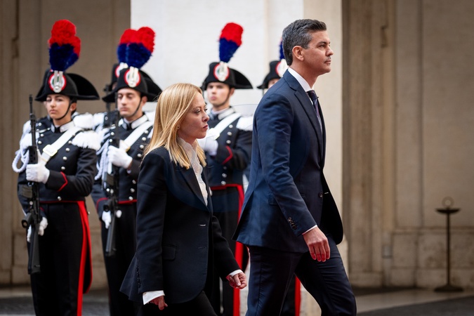 Italian Prime Minister Giorgia Meloni receives the President of Paraguay, Santiago Peña Palacios at Palazzo Chigi in Rome, Italy on 14 October 2025.