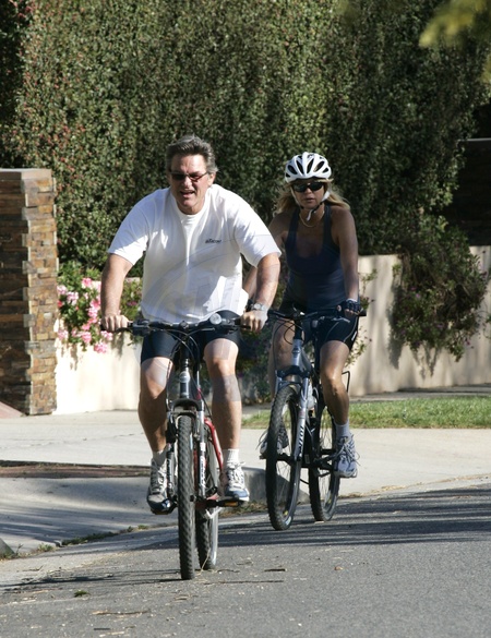 Kurt Russell i Goldie Hawn na przejazdzce rowerowej, Pacific Palissades