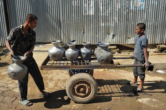 Chattogram, Bangladesh: Workers are collecting driking water come to collect drinking water from the premises of Katlaganj Mosque of cities Panchlaish area . For more than a decade, this source of water has been serving people from all walks of life. With nearly five thousand locals filling their containers daily to take home the pure water they rely on., Credit:Md Rafayat Haque Khan / Avalon
