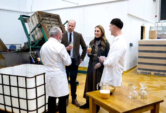 14/10/2025. Portadown, Craigavon, UK. The Prince and Princess of Wales during a visit to Long Meadow Cider in Portadown, Craigavon, Northern Ireland., Credit:Pete Maclaine / Avalon