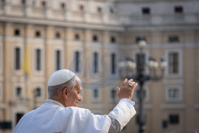 Pope Leo XIV leads his traditional Wednesday General Audience in St. Peter's Square in Vatican City, Vatican, on 15 October 2025.