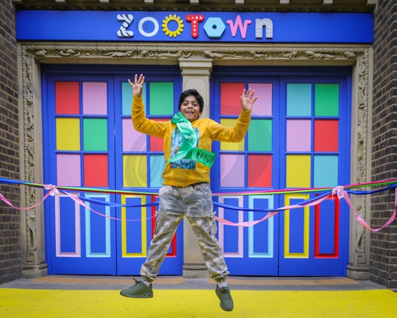 London, UK. 15th Oct 2025. TV presenter and young wildlife enthusiast Aneeshwar Kunchala reveals the entrance sign. ZooTown features themed role-play stations where children can try their hands at activities. The mini conservation zoo is designed to inspire and empower the next generation of conservationists. Open to the public from 18th Oct., Credit:Imageplotter / Avalon