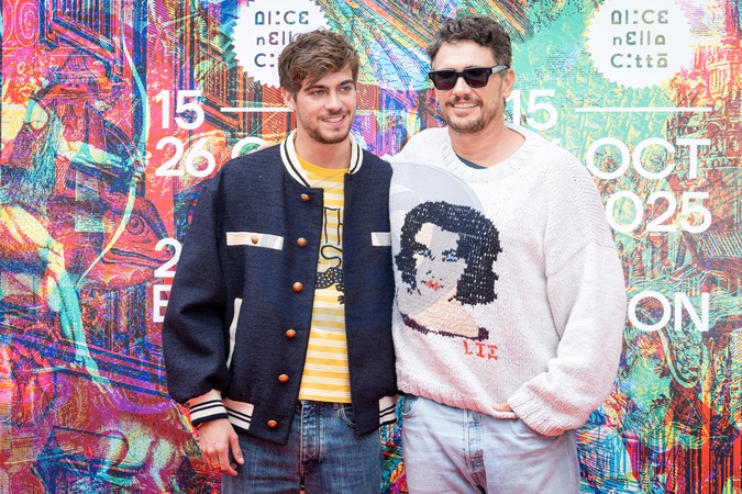 Lorenzo Zurzolo and James Franco attend the "Squali” photocall during during the 20th Rome Film Festival at Auditorium Parco Della Musica in Rome, Italy on 15 October 15, 2025., Credit:Stefano Costantino TTL / Avalon