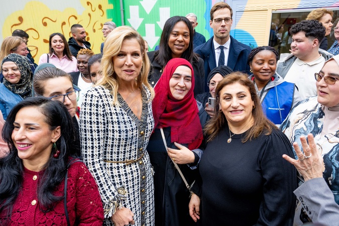 Queen Máxima and State Secretary Nobel on a working visit to Zaandam-Oost, Zaandam, The Netherlands
