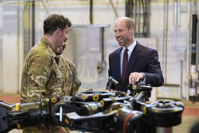 The Prince of Wales (right) helps work on a main rotor head from a chinook helicopter as he meets trainee aircrew and staff from No. 28 (AC) Sqn and No. 22 Sqn during a visit to RAF Benson in Wallingford, Oxfordshire. Picture date: Wednesday October 15, 2025., Credit:Andrew Matthews / Avalon