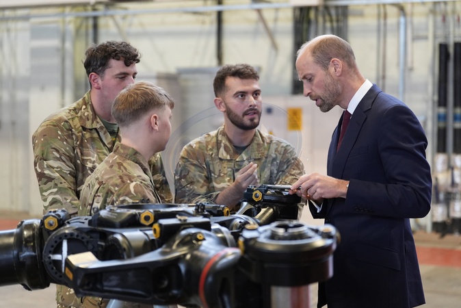 The Prince of Wales (right) helps work on a main rotor head from a chinook helicopter as he meets trainee aircrew and staff from No. 28 (AC) Sqn and No. 22 Sqn during a visit to RAF Benson in Wallingford, Oxfordshire. Picture date: Wednesday October 15, 2025., Credit:Andrew Matthews / Avalon