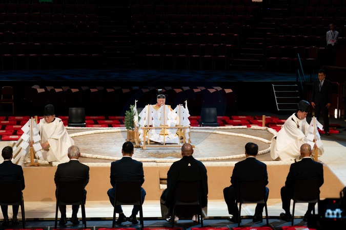 Dohyō-Matsuri (ring blessing ceremony) in the auditorium of the Royal Albert Hall ahead of the tournament commencing this evening. The Grand Sumo Tournament takes place at the Royal Albert Hall between 15–19 October 2025, marking only the second time Jap