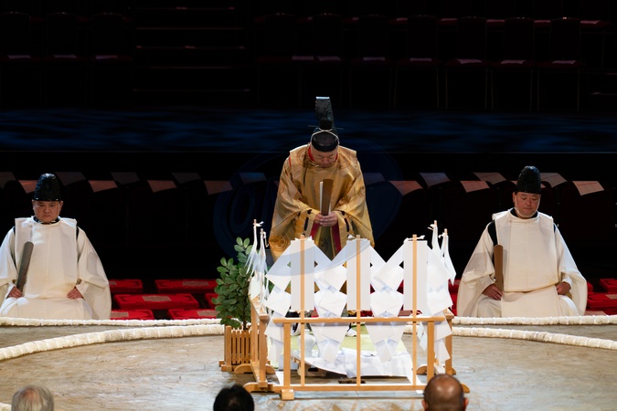 Dohyō-Matsuri (ring blessing ceremony) in the auditorium of the Royal Albert Hall ahead of the tournament commencing this evening. The Grand Sumo Tournament takes place at the Royal Albert Hall between 15–19 October 2025, marking only the second time Jap