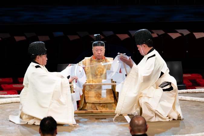 Dohyō-Matsuri (ring blessing ceremony) in the auditorium of the Royal Albert Hall ahead of the tournament commencing this evening. The Grand Sumo Tournament takes place at the Royal Albert Hall between 15–19 October 2025, marking only the second time Jap