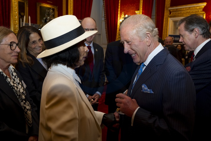 King Charles III greets Bianca Jagger during a reception for scientists and business and indigenous leaders with the Circular Bioeconomy Alliance, at St James's Palace, London. Picture date: Wednesday October 15, 2025., Credit:Avalon.red / Avalon