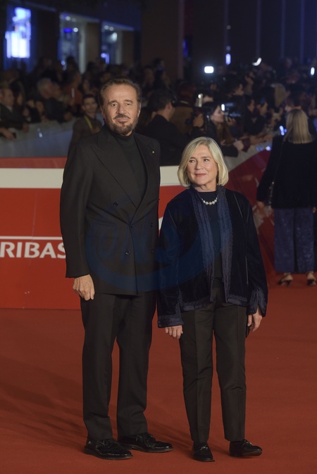 Italy, Rome, October 15th, 2025 - Rome 20th Film Festival. Red carpet of the movie 'La vita va cosi''Pictured: Christian De Sica and wife Silvia Verdone, Credit:Fabio Mazzarella / Avalon