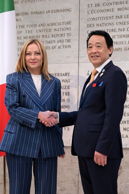 FAO Director General QU Dongyu , italian prime minister Giorgia Meloni during FAO Assembly on the occasion of World Food Day and the 80th anniversary of its foundation, Rome, Italy 16 Oct 2025, Credit:Maria Laura Antonelli / Avalon