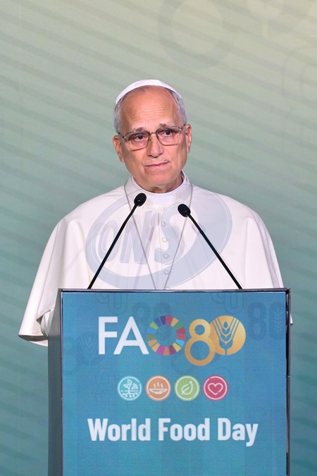 Pope Leo XIV during FAO Assembly on the occasion of World Food Day and the 80th anniversary of its foundation, Rome, Italy 16 Oct 2025, Credit:Maria Laura Antonelli / Avalon