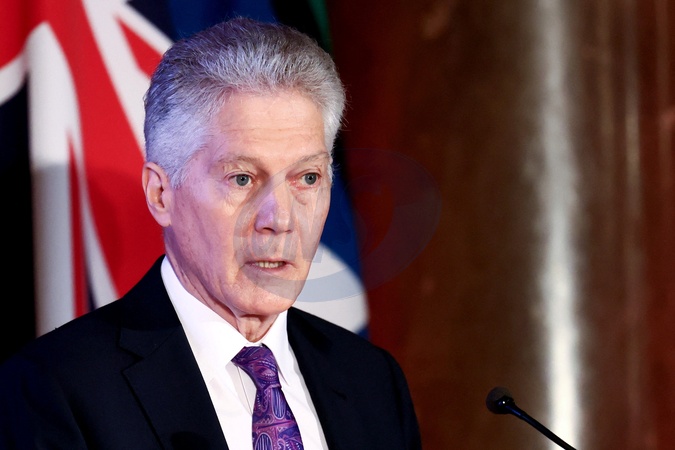 Australian High Commissioner to the United Kingdom, Stephen Smith speaks at the Australian High Commission during a celebration to commemorate the 40th Anniversary of the Handback of Uluru-Kata Tjuta to its Traditional Owners in London, Britain, October 16, 2025., Credit:Avalon.red / Avalon
