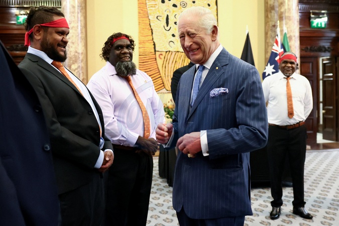 Britain's King Charles meets Anangu Traditional Owners at the Australian High Commission for a celebration to commemorate the 40th Anniversary of the Handback of Uluru-Kata Tjuta, in London, Britain, October 16, 2025., Credit:Avalon.red / Avalon