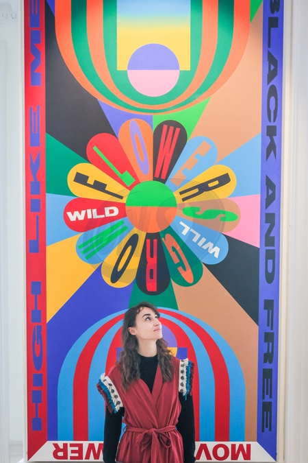 London, UK. 16th Oct 2025. Staff with the 'How We Build A Home' Special Installation of work by Lakwena Maciver, Vigo Gallery, in vibrant colours. 1-54 is the leading global platform for contemporary and modern art from Africa and its diaspora, with many leading galleries and artists present. It draws reference to the 54 countries that constitute the African continent., Credit:Imageplotter / Avalon