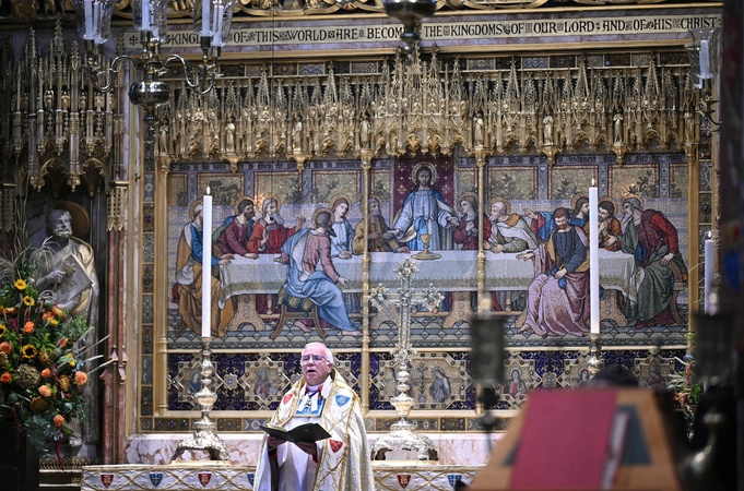 Dean of Westminster David Hoyle leads the National Harvest Festival Service at Westminster Abbey in London on October 16, 2025. The event is set to bring together 2,000 representatives from across the food, farming, food redistribution, and food bank sectors., Credit:JUSTIN TALLIS / Avalon