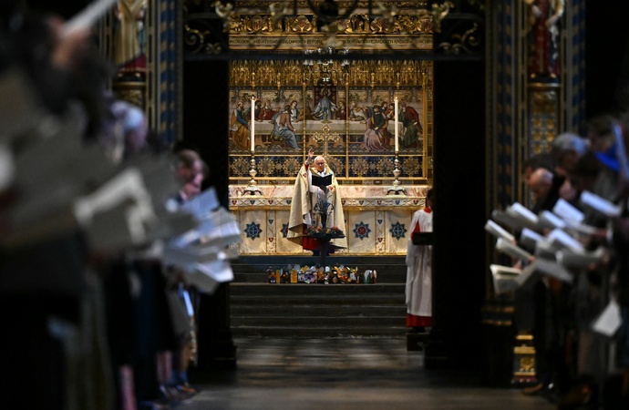 Dean of Westminster David Hoyle leads the National Harvest Festival Service at Westminster Abbey in London on October 16, 2025. The event is set to bring together 2,000 representatives from across the food, farming, food redistribution, and food bank sectors., Credit:JUSTIN TALLIS / Avalon