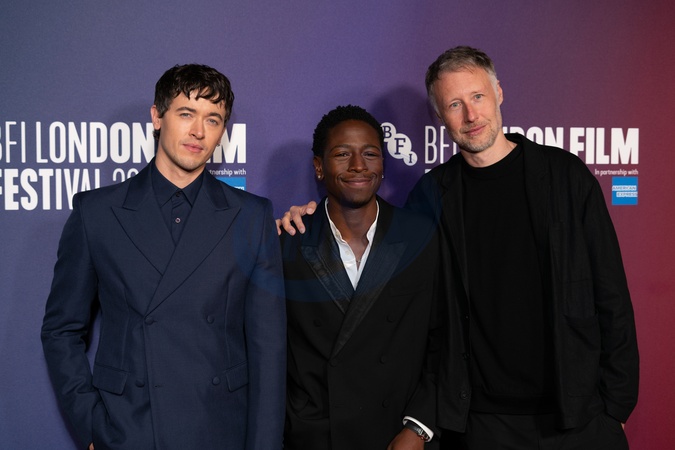 Tom Blyth, David Jonsson and Cal McMauat the BFI London Film Festival Gala of the UK premiere of WASTEMAN, taking place at VUE Leicester Square, London, UK on 16th October 2025., Credit:Oleksii Ovcharenko / Avalon