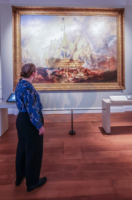 Queen's House, Greenwich, London 17 Oct 2025 The National Maritime Museum will celebrate the 250th anniversary of JMW Turner's birth and the 220th anniversary of the Battle of Trafalgar by placing Turner's only royal commission on permanent display in the Queen's House. Measuring more than three metres across, The Battle of Trafalgar is the largest painting that Turner ever completed. It commemorates the most decisive naval action of the Napoleonic Wars, the victory of the British Royal Navy over a combined French and Spanish fleet off Cape Trafalgar on 21 October 1805., Credit:Pablo Pulpo / Avalon